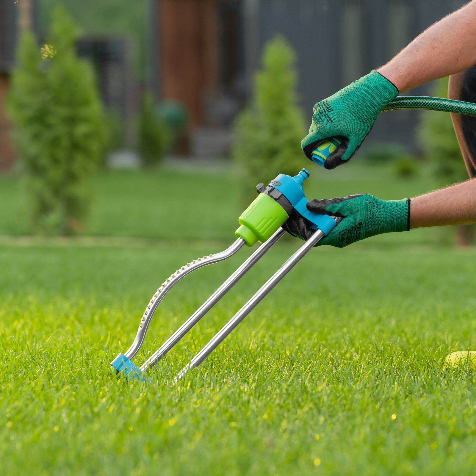 Осциллирующий дождеватель Palisad Luxe 65792 с 17 форсунками предназначен для стационарного орошения прямоугольных участков площадью до 342 кв. м. Угол орошения регулируется, поэтому можно выбрать режим правого, левого либо центрального полива. Есть возможность установки дальности разбрызгивания до 19 м. Распылитель используется для ухода за растительностью на загородном участке и прочих озелененных территориях.