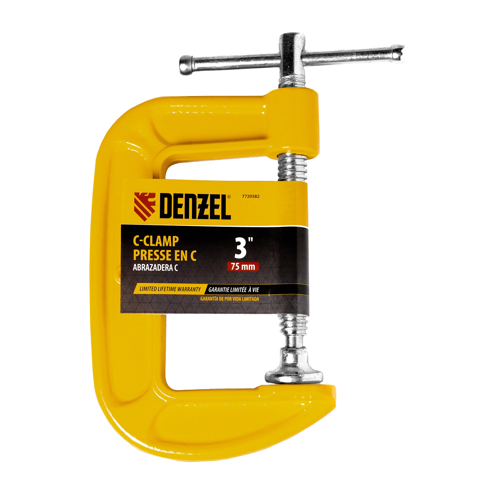 G-образная струбцина Denzel 7720582 с шириной захвата 3″ (75 мм) позволяет зажимать заготовки, фиксировать их на верстаке или станке. Упрощает склеивание деревянных деталей, а также сверление, резание и опиливание заготовок. Может использоваться во время сварочных работ. Струбцина применяется для металлообработки, востребована в столярном и слесарном деле, будет полезна в быту.